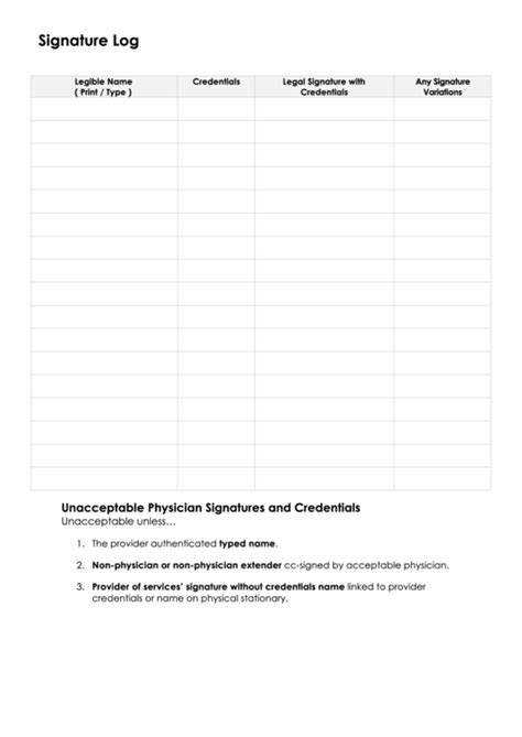 Download signature log template Doc